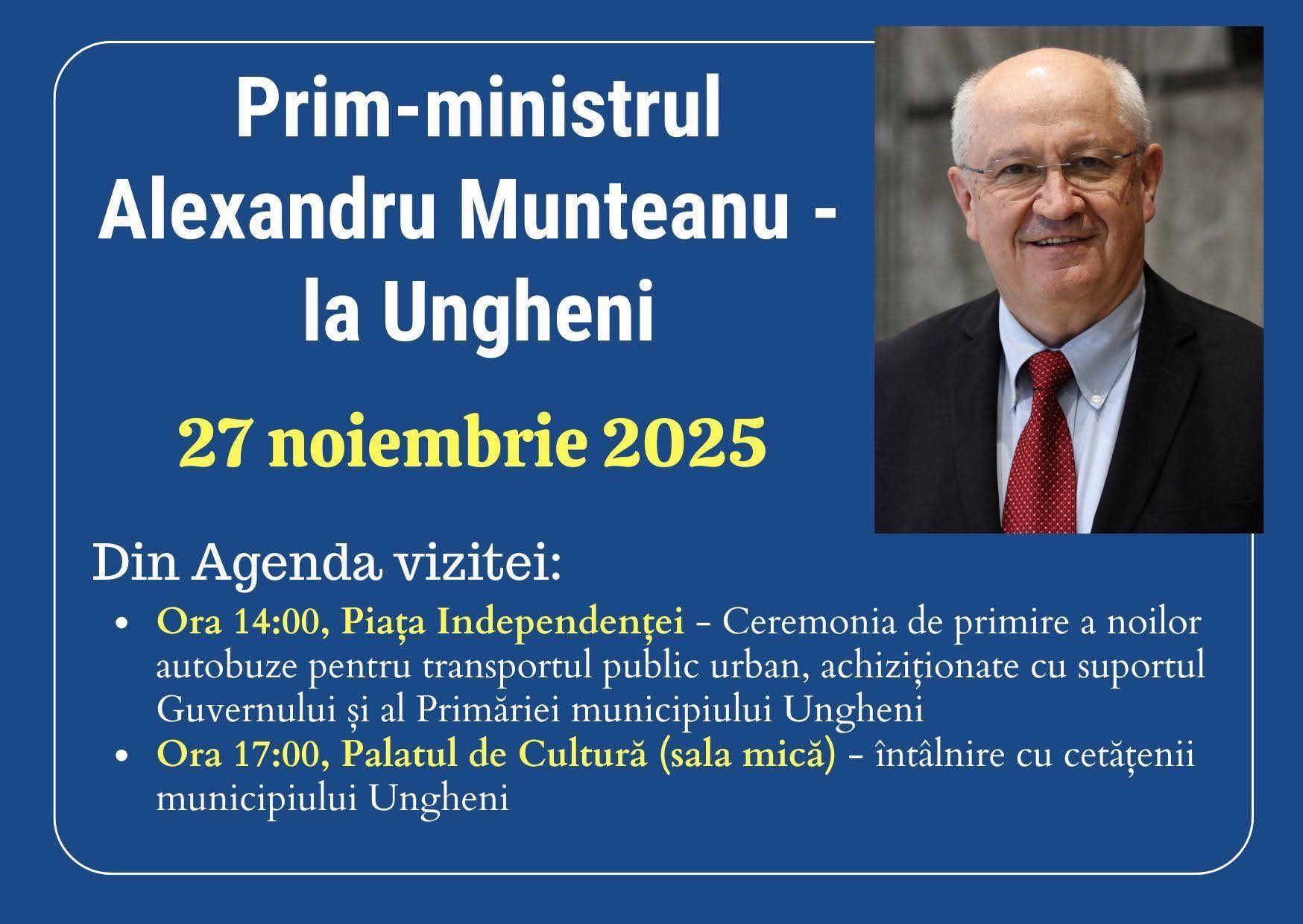 Premierul Alexandru Munteanu va efectua prima sa vizită în teritoriu mâine, 27 noiembrie 2025, în raionul Ungheni.