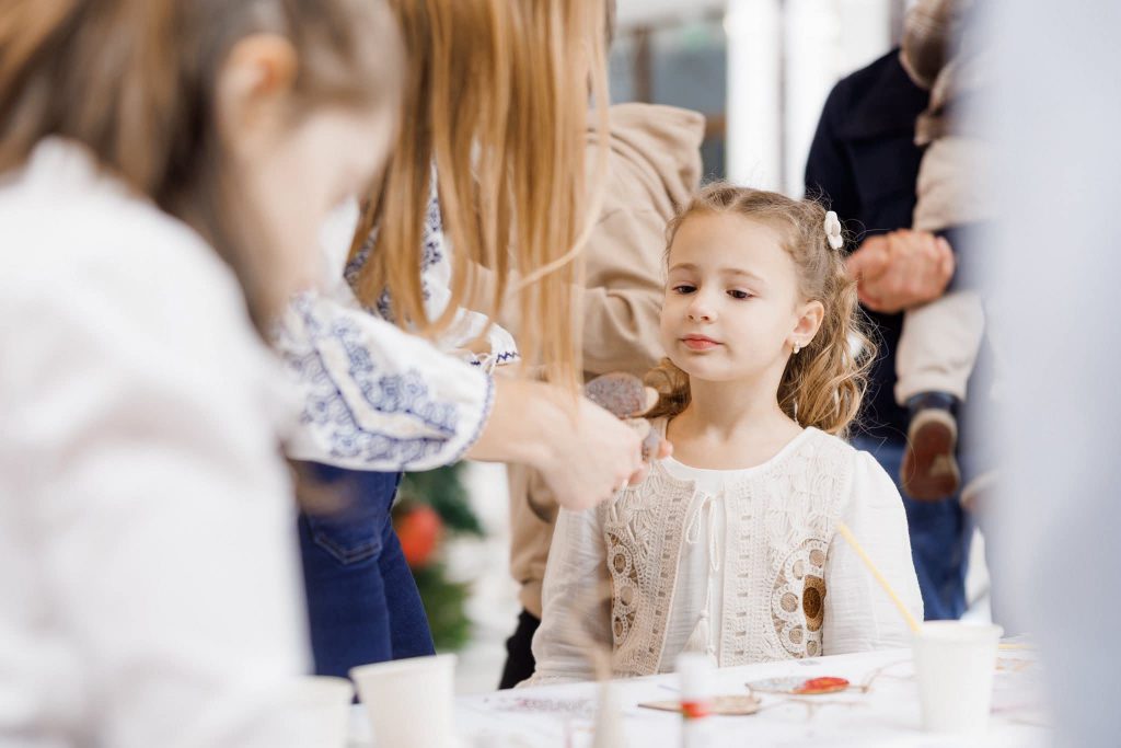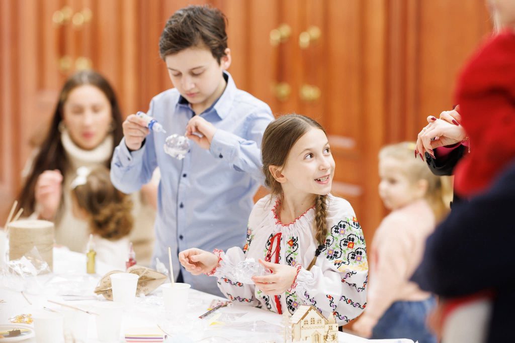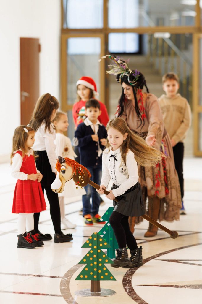 Cei prezenți la sărbătoare s-au distrat împreună cu un grup de artiști de la Teatrul Republican de păpuși „Licurici” și au confecționat jucării pentru brad.