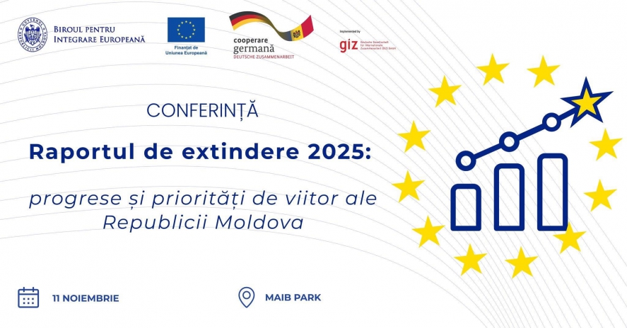 Biroul pentru Integrare Europeană (BIE) organizează Conferința „Raportul de extindere 2025: progrese și priorități de viitor ale Republicii Moldova”, la 11 noiembrie curent, informează OFICIAL.