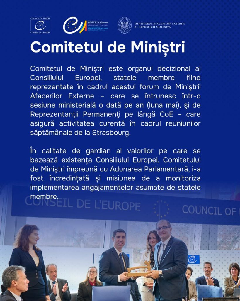 Pe 14 noiembrie, Republica Moldova a preluat Președinția Comitetului de Miniștri al Consiliului Europei.