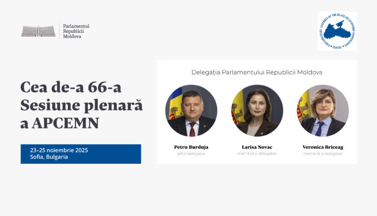 Delegația Parlamentului Republicii Moldova participă la cea de-a 66-a sesiune plenară a Adunării Parlamentare a Cooperării Economice la Marea Neagră (APCEMN). Evenimentul are loc în perioada 23 – 25 noiembrie, la Sofia, Bulgaria.