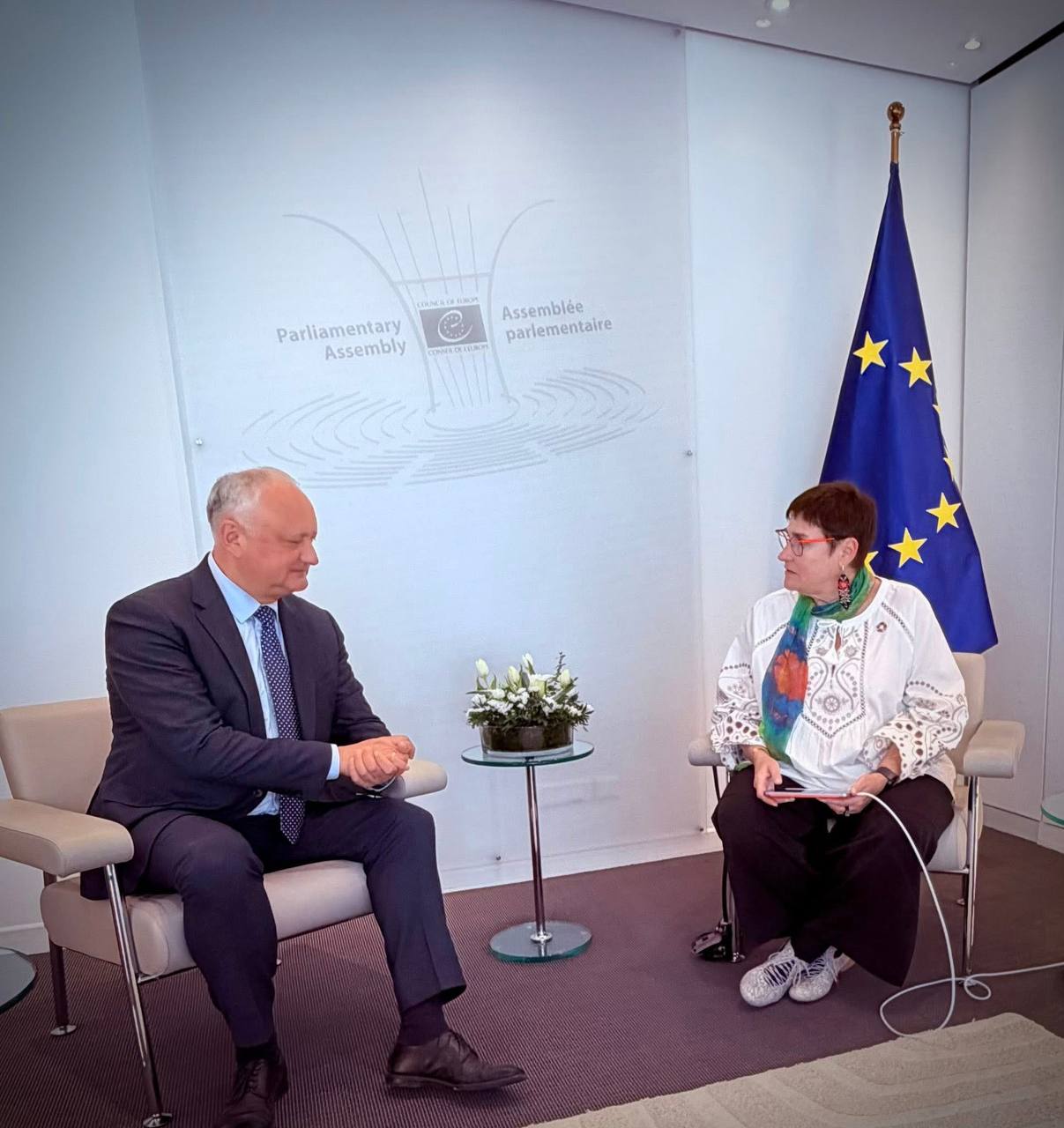 În cadrul sesiunii de primăvară a Adunării Parlamentare a Consiliului Europei, președintele PSRM și liderul fracțiunii parlamentare, Igor Dodon, a desfășurat la Strasbourg o întrevedere cu președinta APCE, Petra Bayr.