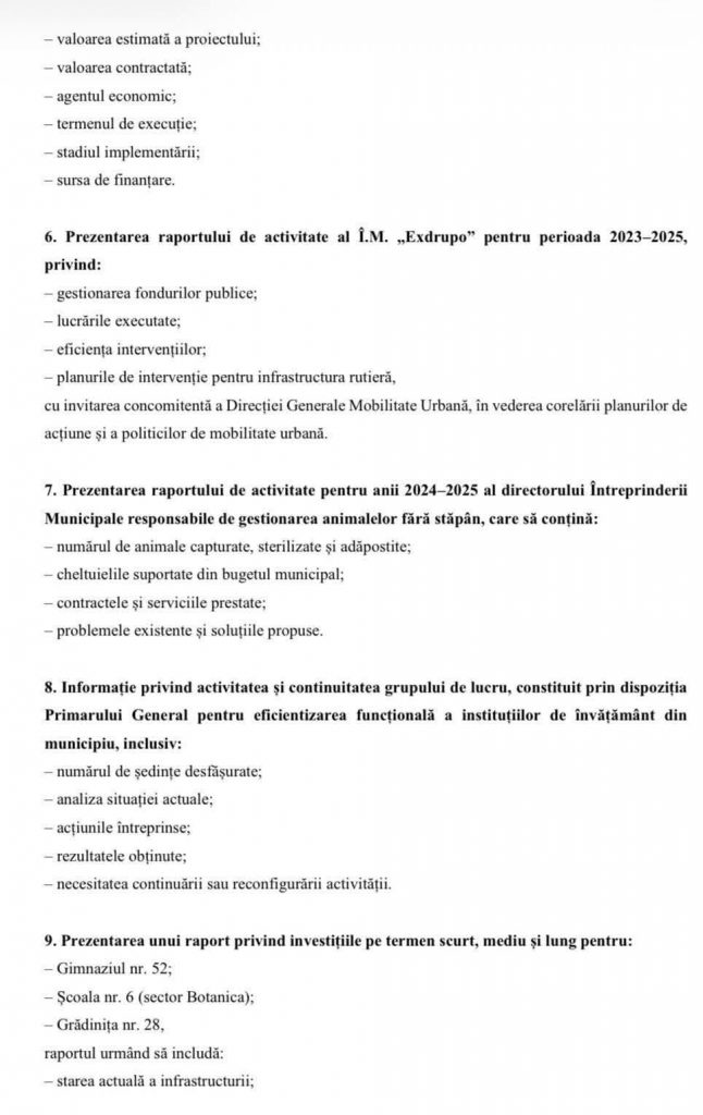 Iată care este ordinea de zi propusă: