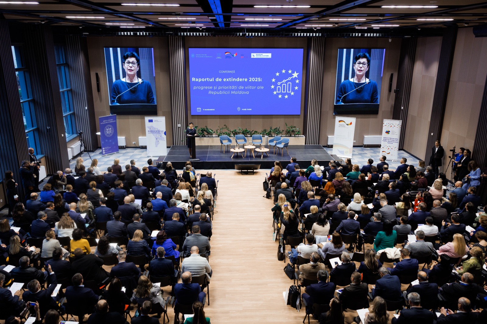 Peste 400 de participanți – reprezentanți ai Guvernului, ai sectorului de afaceri, societății civile, mediului academic și parteneri internaționali – au fost prezenți astăzi la Conferința „Raportul de Extindere 2025: progrese și priorități de viitor ale Republicii Moldova”, organizată de Biroul pentru Integrare Europeană.