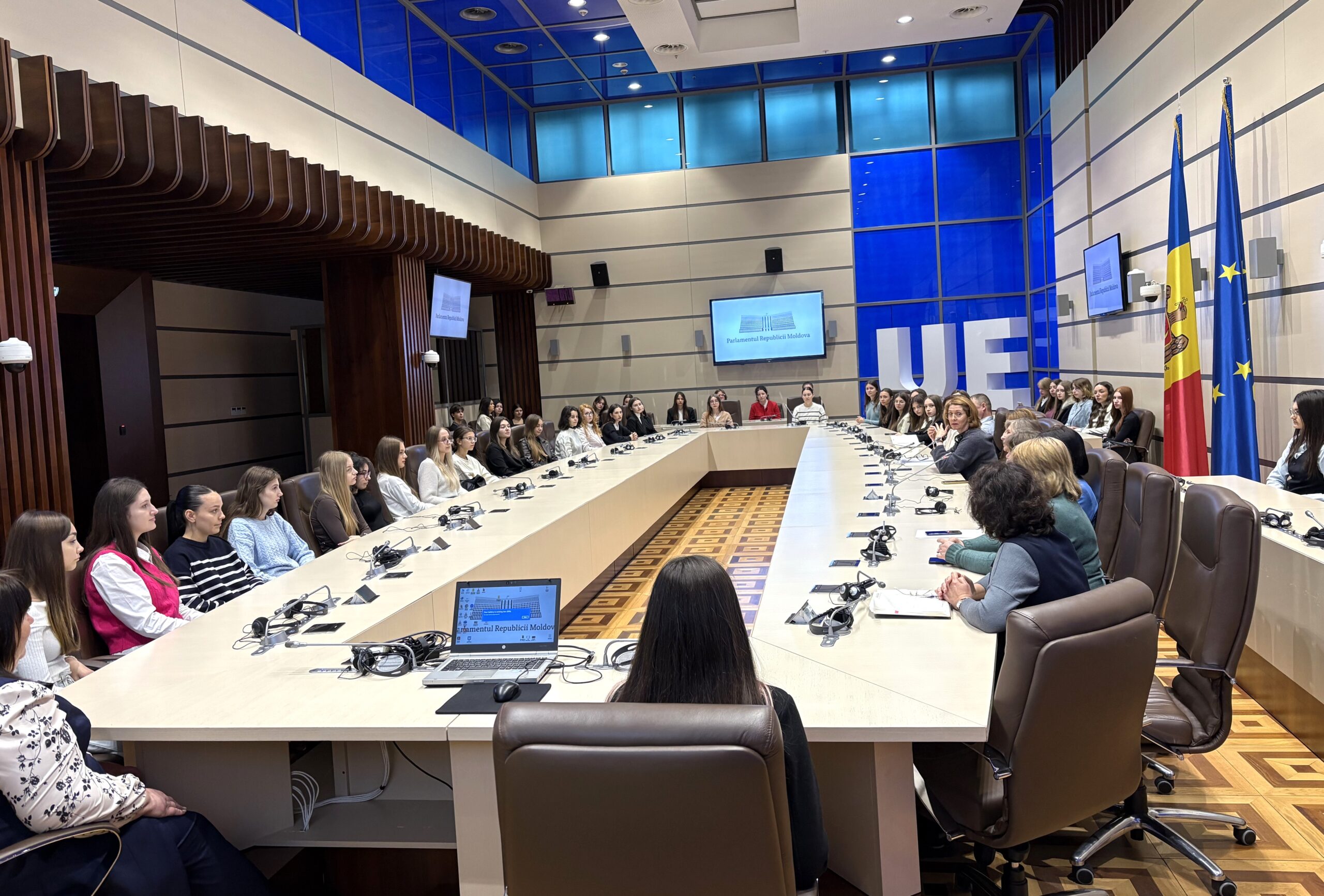 Un grup de studenți ai Universității de Stat din Moldova au participat la un exercițiu de simulare a traducerii simultane desfășurat la Parlament