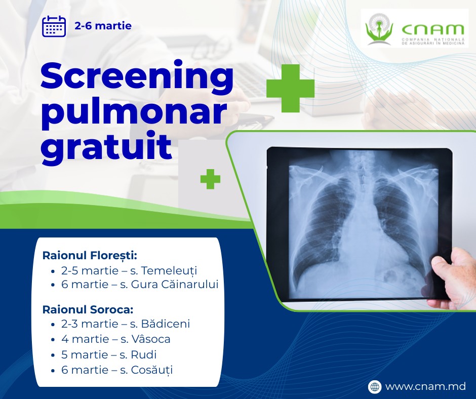 Pentru anul 2026, în fondul măsurilor de profilaxie sunt planificați 1,9 milioane de lei pentru prestarea serviciilor de screening pulmonar prin radiografie digitală mobilă.