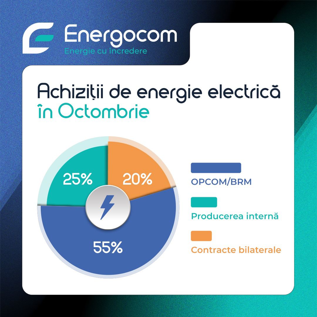În luna octombrie 2025, S.A. „Energocom” a achiziționat circa 387,3 mii MWh de energie electrică, provenind atât din surse interne, cât și din importuri, la un preț mediu ponderat de 132,44 EUR/MWh.