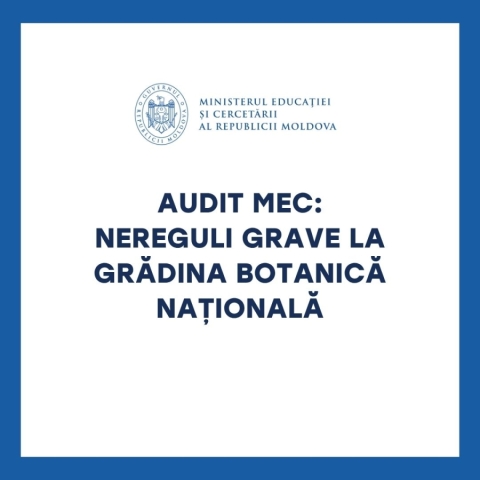 Ministerul Educației și Cercetării anunță finalizarea unei misiuni de audit intern la Grădina Botanică Națională (Institut) „Alexandru Ciubotaru” (GBNI), instituție de cercetare din cadrul Universității de Stat din Moldova. Raportul de audit evidențiază deficiențe sistemice în gestionarea resurselor financiare, administrarea patrimoniului public și organizarea activităților de cercetare, care generează riscuri semnificative privind utilizarea eficientă și conformă a fondurilor publice. Potrivit raportului, suma potențialelor venituri ratate se ridică la aproximativ 10 milioane de lei în ultimii trei ani.