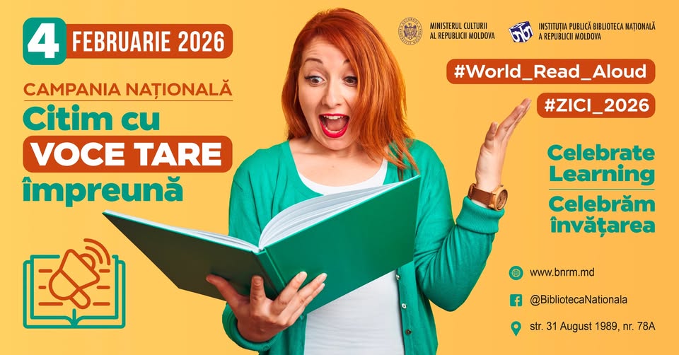 Biblioteca Națională a Republicii Moldova (BNRM) lansează ediția 2026 a Campaniei Naționale „Citim cu voce tare împreună”. Acțiunea are drept scop promovarea lecturii cu voce tare ca instrument esențial pentru alfabetizare, gândire critică și învățare pe tot parcursul vieții. BNRM invită să participe la această campanie bibliotecile, instituțiile de educație și toate comunitățile.
