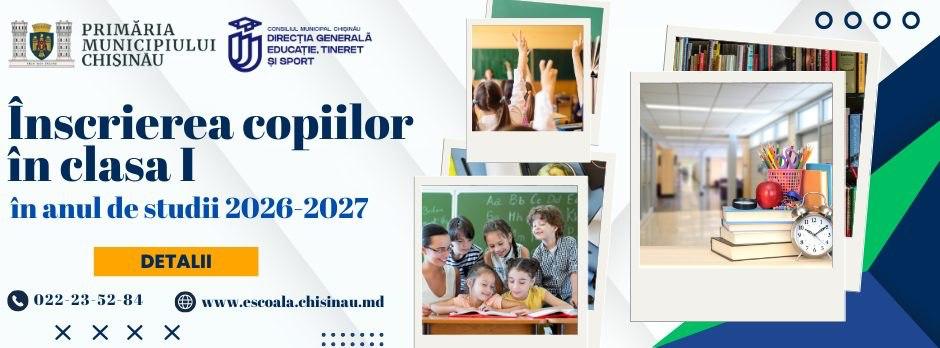 Primăria Chișinău informează că, astăzi 01 aprilie, se dă startul Procedurii de înscriere a copiilor în clasa I pentru anul de studii 2026-2027.