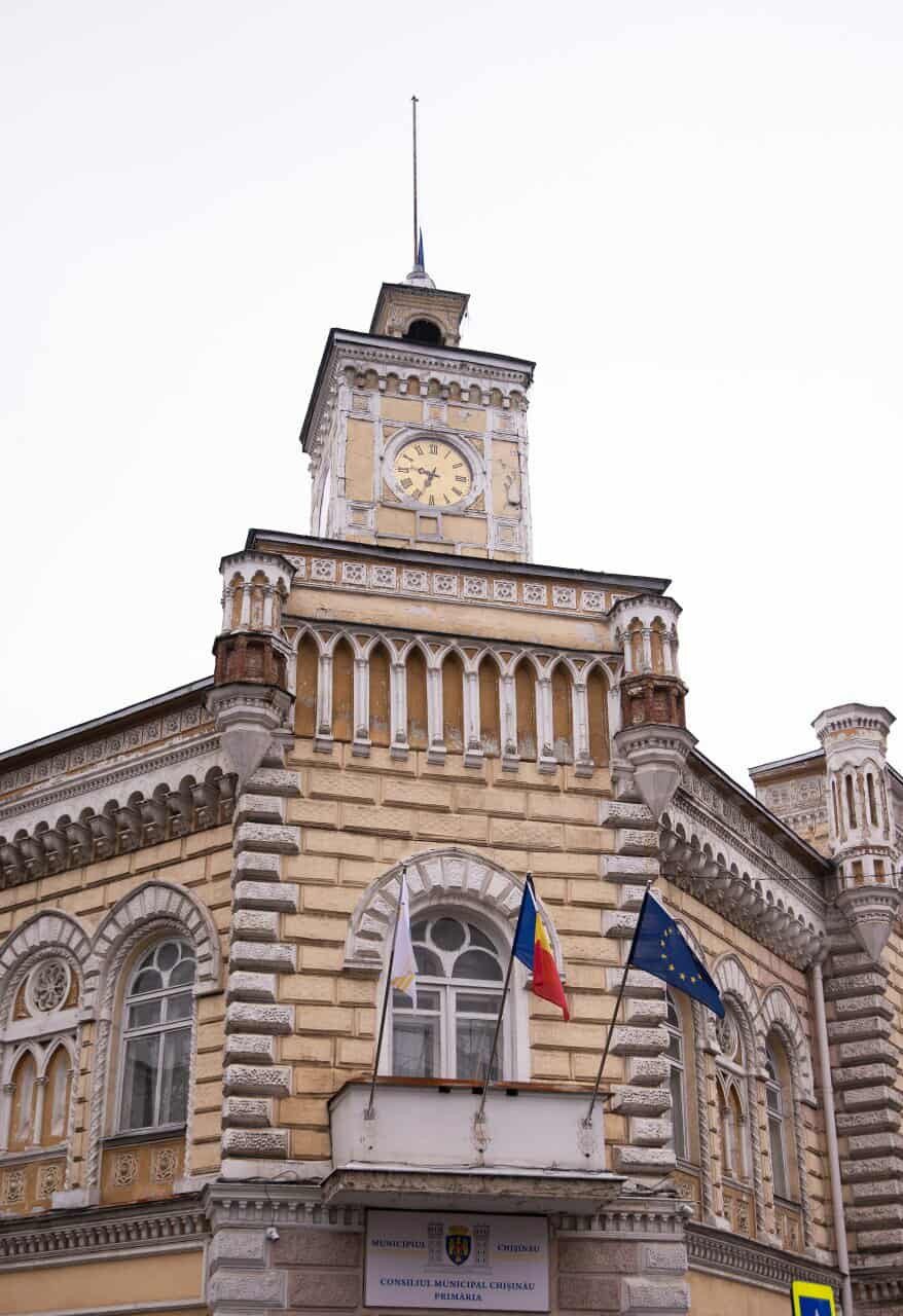 Drapelele de pe clădirea Primăriei Municipiului Chișinău au fost arborate astăzi în bernă