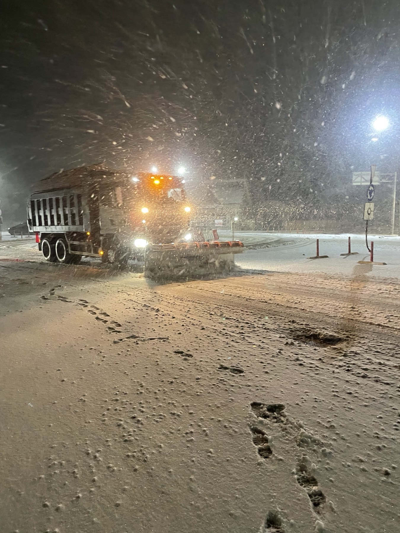 Echipele de drumari au intervenit pe parcursul nopții și continuă să fie mobilizate în teren, desfășurând lucrări de patrulare, deszăpezire și combatere a poleiului. Se răspândește material antiderapant pentru menținerea traficului în condiții de siguranță.