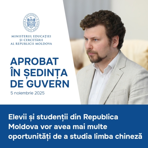 Guvernul a aprobat semnarea Acordului dintre Ministerul Educației și Cercetării al Republicii Moldova și Ministerul Educației din Republica Populară Chineză privind cooperarea în domeniul predării limbii chineze.