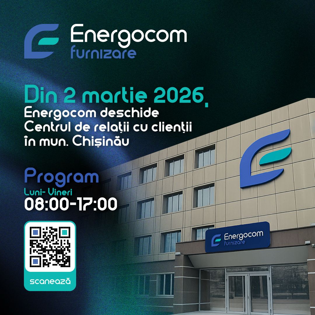 Începând cu 2 martie 2026, S.A. „Energocom” deschide propriul Centru de relaţii cu clienții, destinat consumatorilor din municipiul Chișinău.