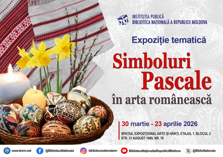 Expoziția „Simboluri Pascale în arta românească” oferă publicului o incursiune în bogăția simbolisticii pascale reflectată în arta românească, printr-o selecție de albume, cataloage, manuale, monografii, cărți poștale. Vizitatorii vor putea descoperi reprezentări artistice ale motivelor pascale: de la icoane, până la ouă încondeiate, țesături tradiționale și lucrări grafice moderne.
