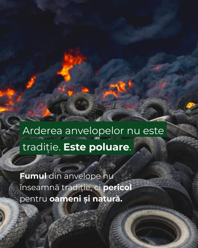 Arderea anvelopelor nu este o tradiție, ci o sursă gravă de poluare. Fumul toxic afectează sănătatea oamenilor, poluează aerul și dăunează mediului.