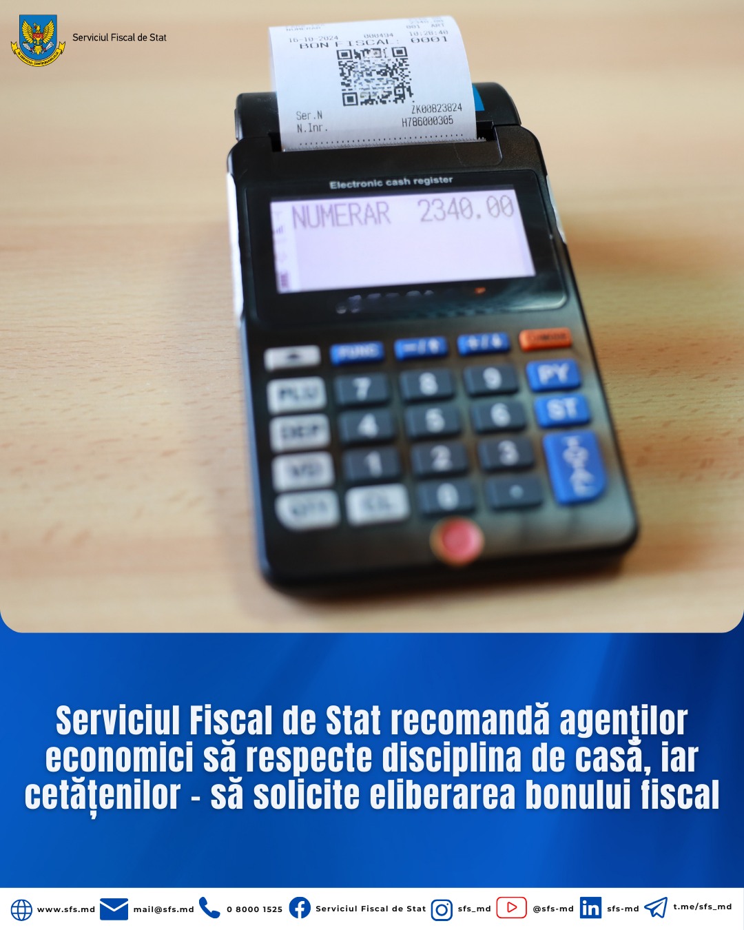 Pentru orice sesizare sau nelămurire, contribuabilii și consumatorii sunt îndemnați să contacteze Serviciul Fiscal de Stat și să raporteze cazurile de încălcări fiscale prin intermediul Centrului unic de apel al SFS – apel gratuit la numărul 0 8000 1525.