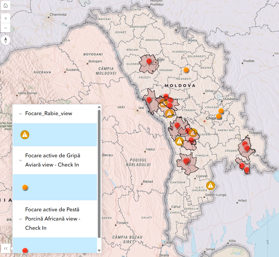 - 1 focar, în fauna sălbatică, în mun. Chișinău, or. Vadul lui Vodă;