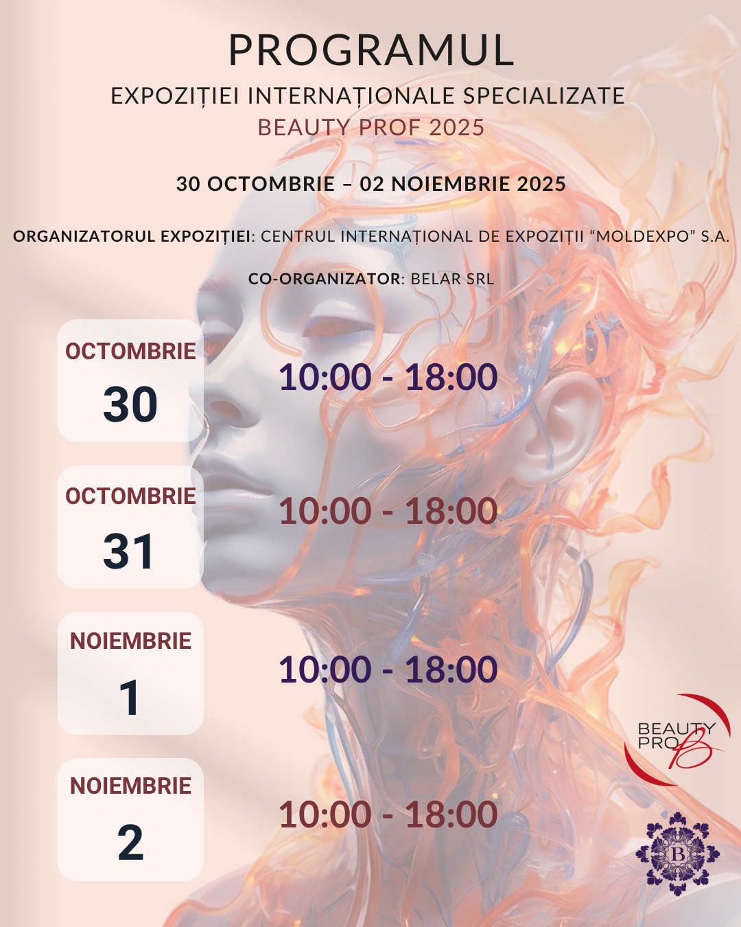 Expoziția Beauty prof 2025, care va avea loc la CIE Moldexpo în perioada 30 octombrie – 2 noiembrie are o agendă extrem de complexă și interesantă.