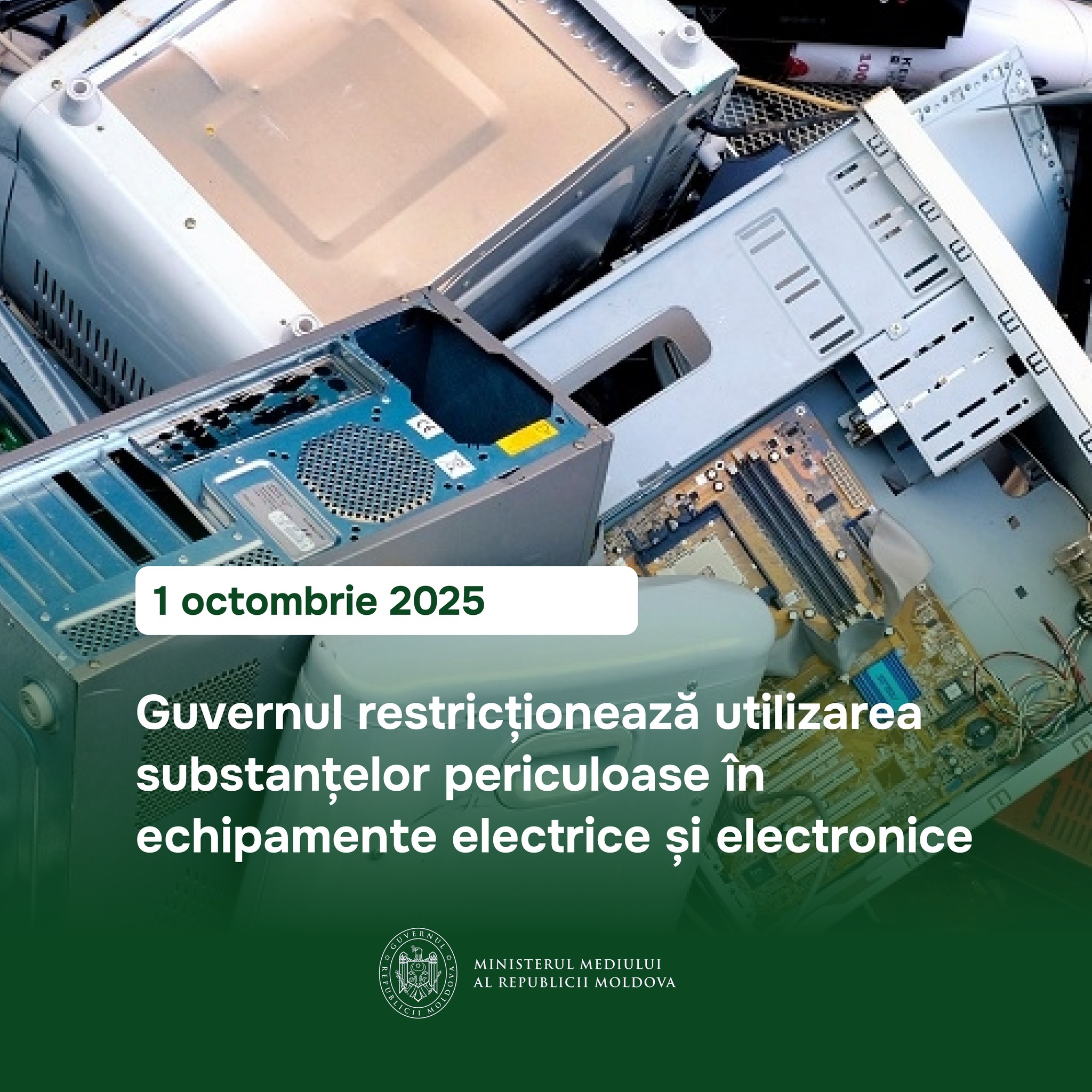 Cabinetul de miniștri a aprobat, în ședința de astăzi, proiectul de hotărâre care prevede limitarea utilizării unui grup de substanțe chimice periculoase în echipamentele electrice și electronice.