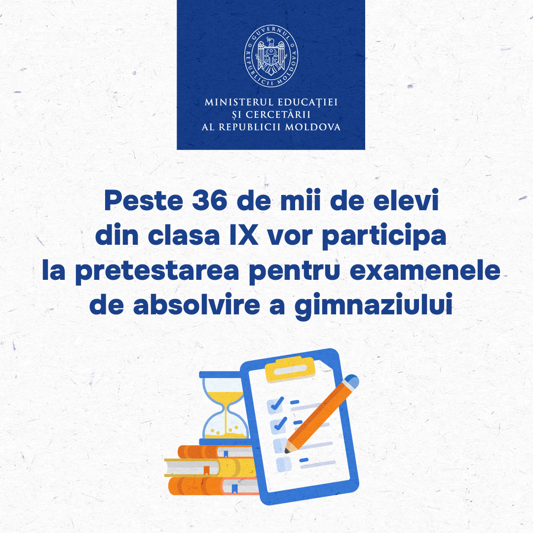 Elevii din clasele a IX-a susțin, în zilele de 24 și 26 februarie 2026, pretestarea republicană la matematică și, respectiv, la limba și literatura română (pentru școlile cu predare în limbile minorităților naționale) – probe incluse în lista examenelor naționale de absolvire a gimnaziului. Pretestările republicane sunt organizate de Agenția Națională pentru Curriculum și Evaluare (ANCE).