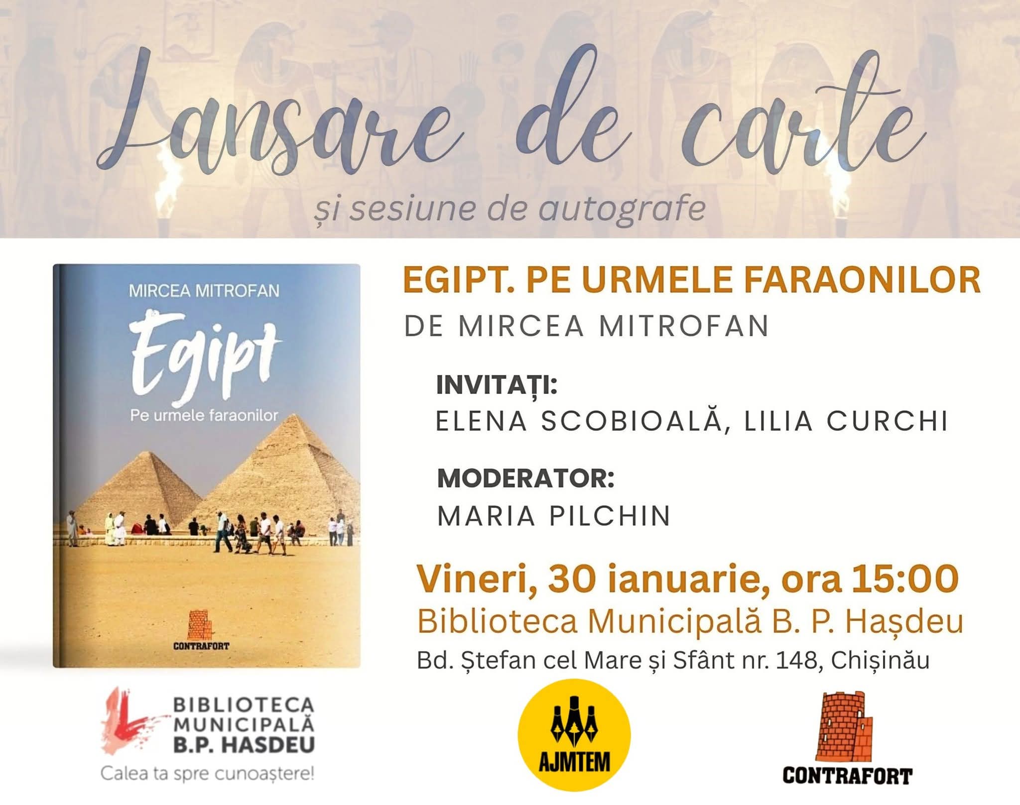 Jurnalistul Mircea Mitrofan își va lansa Jurnalul de călătorie „Egipt. Pe urmele faraonilor” la Chișinău, pe 30 ianuarie curent.