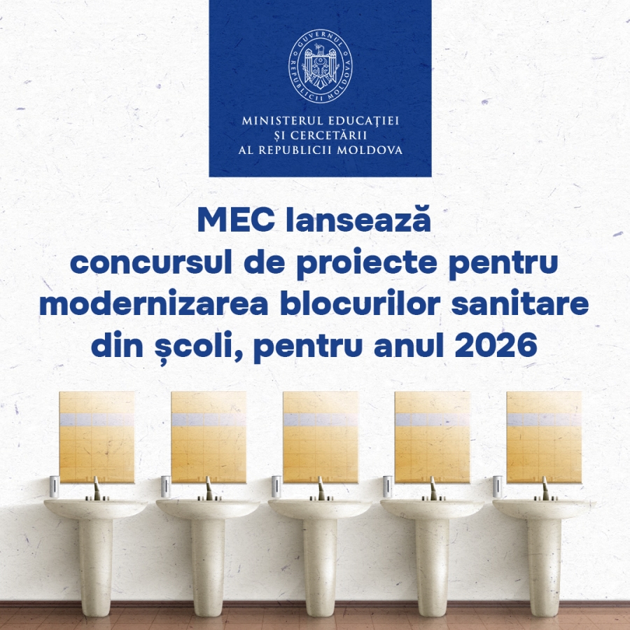 Ministerul Educației și Cercetării (MEC) anunță lansarea concursului de proiecte pentru construcția, renovarea și reabilitarea blocurilor sanitare în instituțiile de învățământ primar, gimnazial și liceal, pentru anul 2026.
