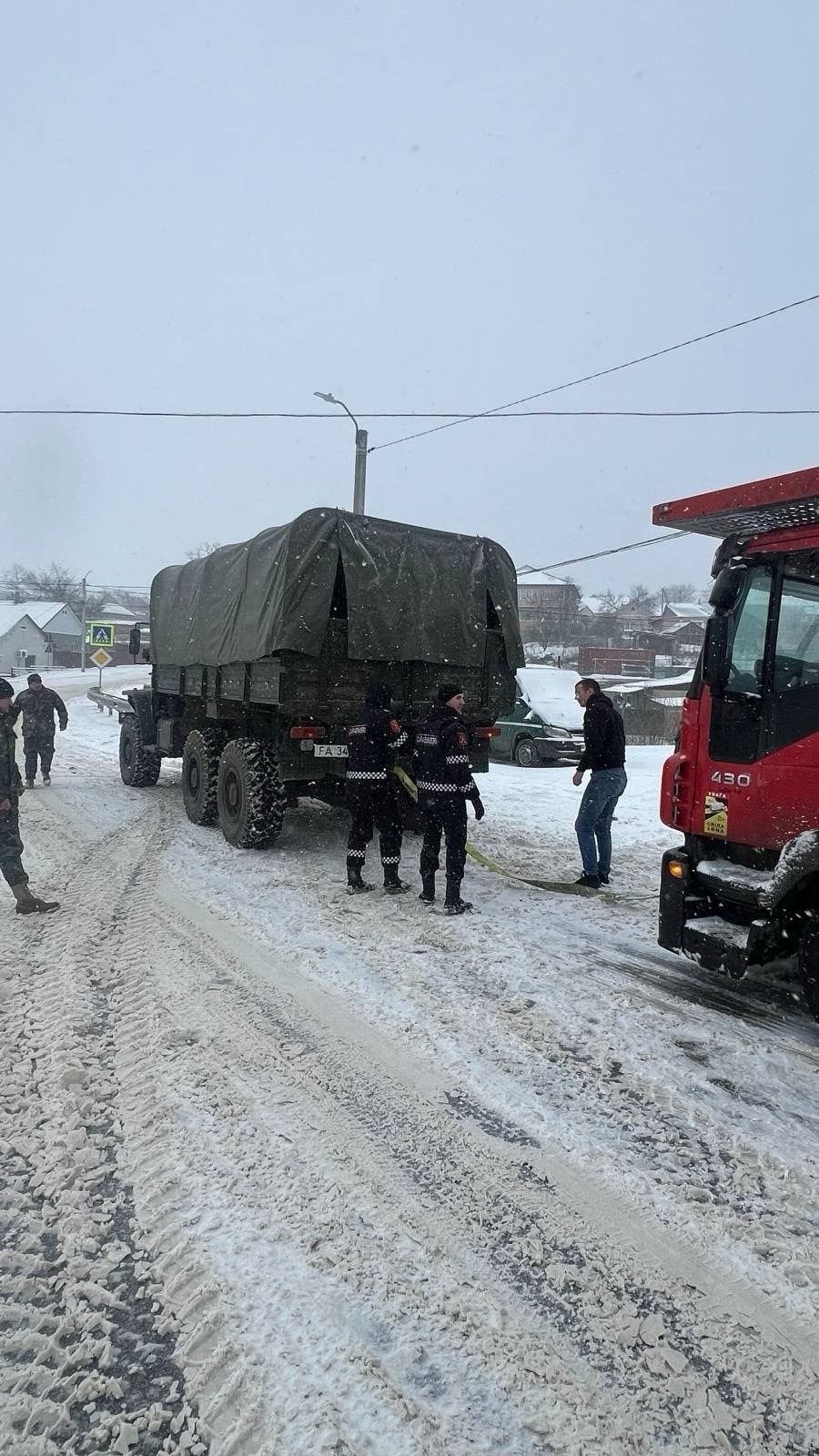 Militarii din Brigada Infanterie Motorizată „Dacia” intervin la solicitarea Autorităților Publice Locale pentru tractarea transportului de tonaj mare blocat pe străzile din municipiul Cahul.