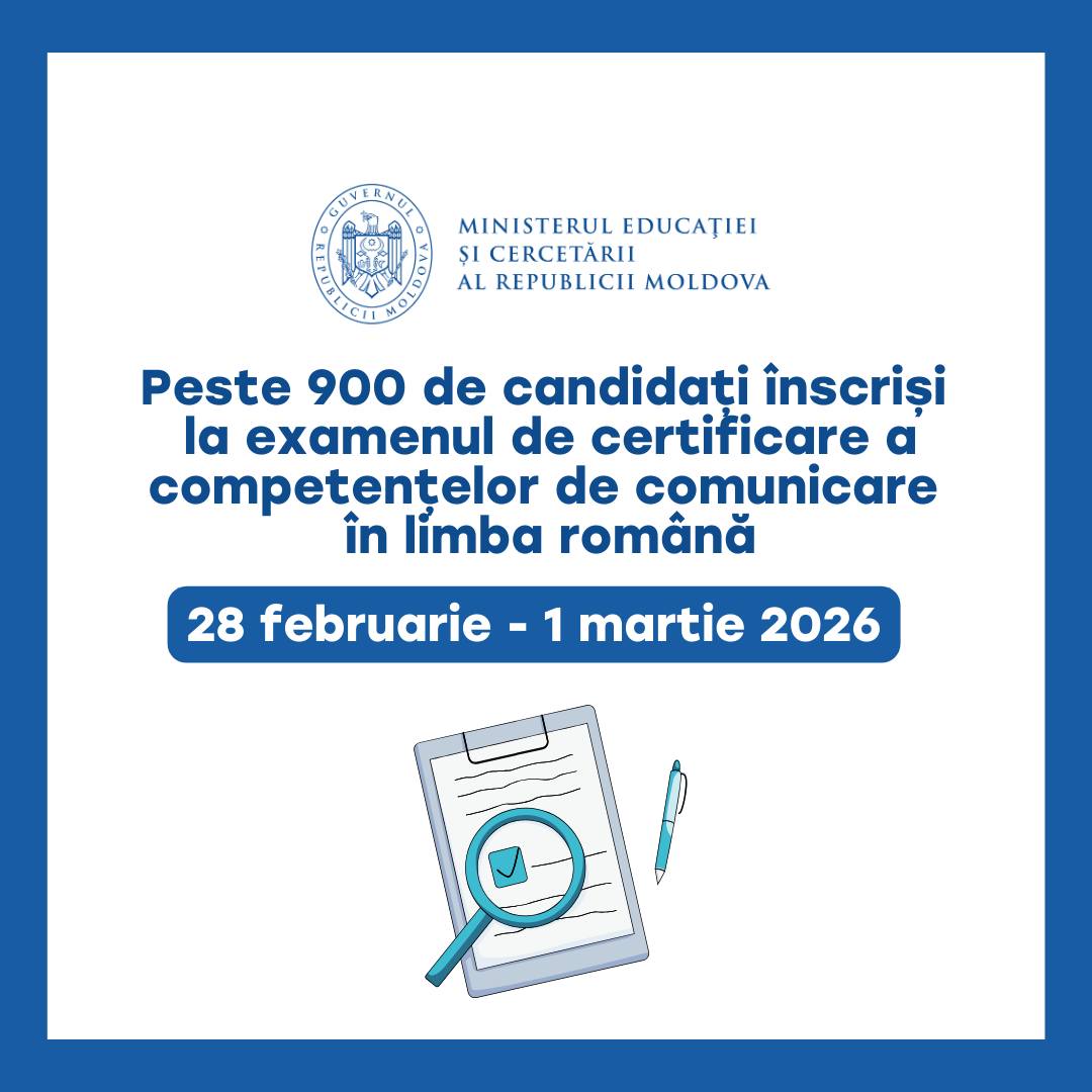 În premieră pentru sistemul educațional din Republica Moldova, la 28 februarie și 1 martie 2026, va fi organizat examenul de evaluare a competențelor de comunicare în limba română. La testare pot participa atât persoanele adulte, cât și elevii din învățământul liceal (clasele a X-a – a XII-a).