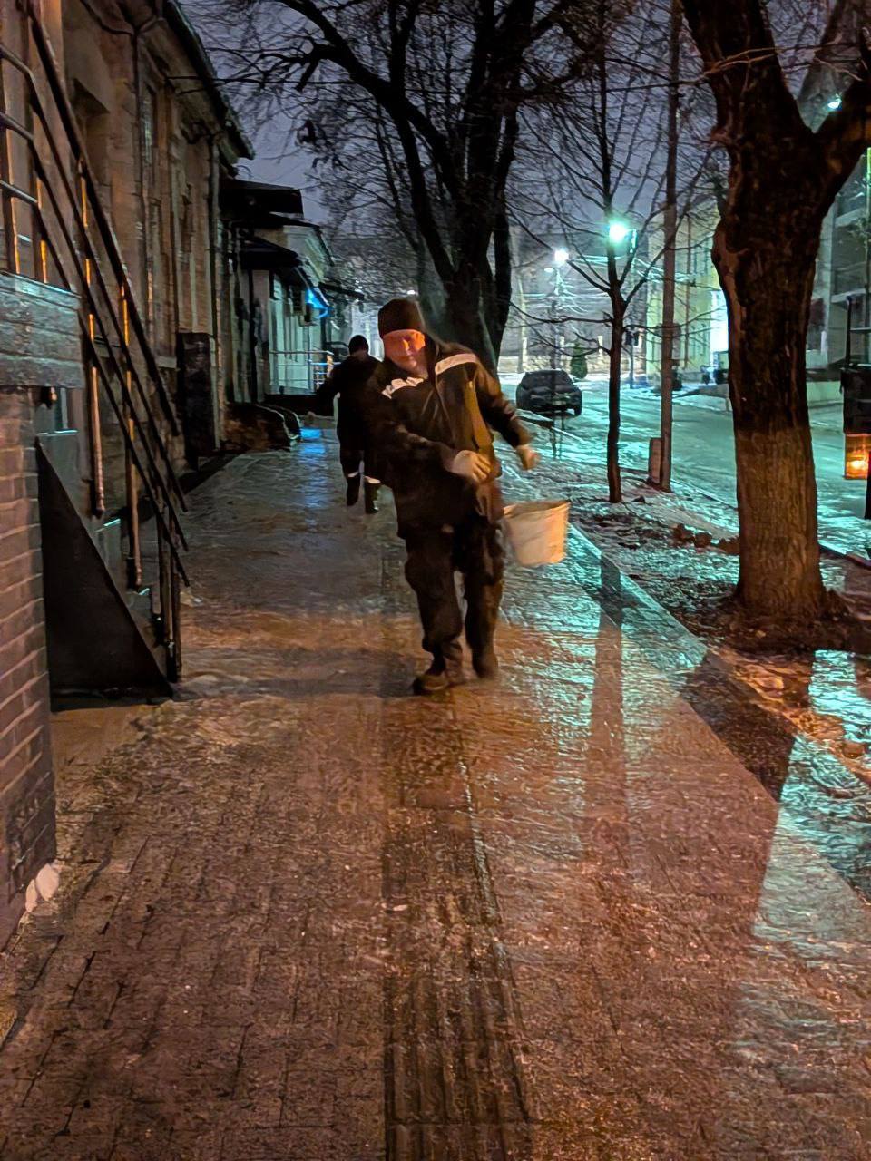 Pe parcursul nopții serviciile municipale de profil intervin la combaterea ghețușului prioritar în stațiile de așteptare, trecerile pietonale și pasajele subterane, curți de blocuri, în parcuri și scuaruri intens circulate de către cetățeni.