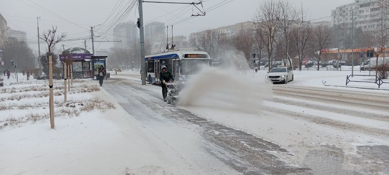 Muncitorii regiilor comunale, ai întreprinderilor municipale de profil intervin prin lucrări mecanizate, cât și manual la împrăștierea materialul antiderapant și deszăpezire pe cele mai problematice adrese.