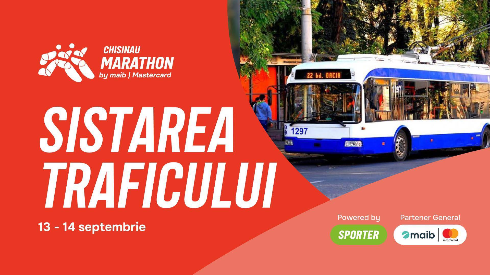 De asemenea, informăm că pe 14.09.2025, orele 02:00-17:00, va fi sistată circulația transportului rutier pe traseele curselor maratonului (cursa Fun Run de 1km, 5 km, 10km, 21km, 42km), bd. Ștefan cel Mare și Sfânt va fi închis (pe tronsonul cuprins între străzile Toma Ciorbă și Ciuflea) – str. Ciuflea – bd. Dacia (viaduct, spre centru):