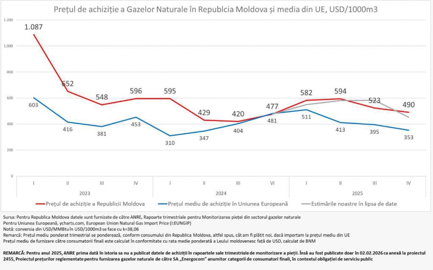 Gravitatea situației este amplificată de contextul internațional. În 2025, pe piețele europene și internaționale, prețurile la gazele naturale au început să scadă. În Republica Moldova însă, prețul de achiziție a crescut. Diferența față de media europeană a ajuns la aproximativ 26%, o anomalie majoră care trebuia să declanșeze intervenția reglementatorului.
